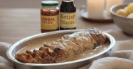 Min variant på receptet ”fläskytterfilé i sockerkaksform” är bloggens i särklass mest lästa inlägg. Jag har ofta lagat den själv då rätten älskas av Kära Hustrun och det är en rätt som i stora delar lagar sig själv. Jag har dock aldrig avvikit från receptet. Men denna gång svängde jag till det då det saknades svartvinbärgelé hemma. Ketjap manis, misopasta och dijonsenap åkte ner i såsen istället. Resultatet blev samma smakrika, krämiga underbara sås men med ett rejält sting och lite mer djup. (AI-genererad bild då jag inte tog en bild…viste inte hur gott det skulle bli)