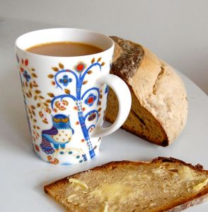 Flummigt tänkt över en kopp UTZ-certifierat kenyanskt kaffe med en slatt mjölk från Skånemejerierna, långjäst bröd på stenmalt mjöl från Poilâne med syrligt smör från Bretagne.