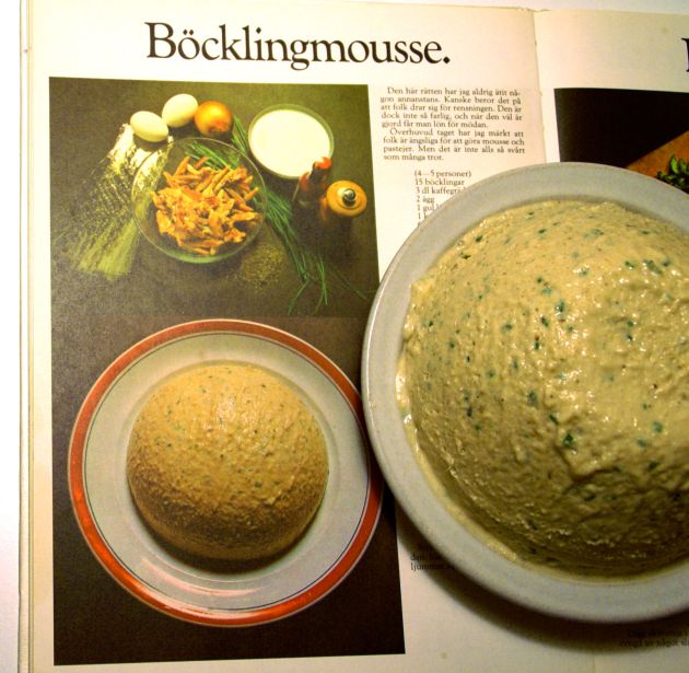 Ett halvt kilo rökta sillar skulle rensas från ben. Ungefär en miljard trådlika ben skulle avlägsnas ur smetigt kött. Jag gav snabbt upp och fick en ljus idé. Eftersom fisken ändå skulle mosas så kunde jag ju lika gärna köra den med mixerstaven och pulverisera benen. Resultatet blev en krämig böcklingpuré från vilken benen stod ut som morrhår. Det såg ut som jag mixat en bondkatt. Jag släppte mixerstaven stående mitt i fisksmeten och dök ner i en låda för att hitta en trådsil att passera eländet igenom. Två skarpa smällar fick mig att snabbt fara upp ur lådan. På golvet låg bunken med det mesta av pastan kvar och resten utspridd som en brungrå hundspya. Alldeles intill låg min handmixer i ungefär fem bitar. Adjöss med den. Efter uppröjning tog jag mig an passerandet men silen var för tät. Snabb språngmarsch till kvarterskrogen där jag fick låna en större variant. Bättre resultat men mycket spill.