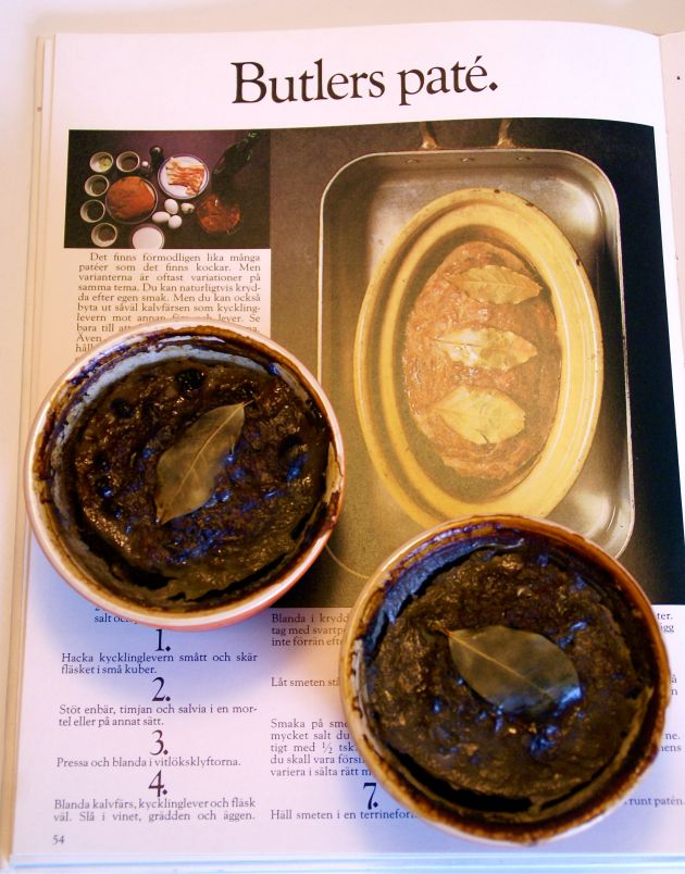 Nånting i det här receptet stämmer inte. Smeten blev alldeles rinnig och det tog mycket, mycket längre tid att grädda patén än vad som angavs. Dessutom blev den så obeskrivligt, oaptitligt ful att jag valde att fotografera de obetydligt snyggare extraformarna jag gräddade samtidigt.