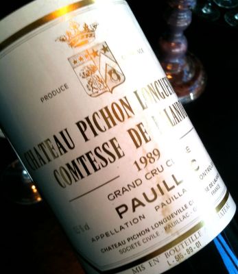 en spenattimbal med ramslök och rosmarinsky. 89:an hade en skoltexttypisk näsa med ceder, cigarrlåda, svartvinbär, jordgubbe, stallbacke och —- (fill in the blanks). Smaken fyllig, balanserad, koncentrerad med mörk frukt, avrundade tanniner men med en stramhet typisk för kommunen Pauillac. Mycket bra och snudd på stort. Helt annorlunda var 91:an som först lockade med en trevlig näsa men sedan avslöjade den mediokra årgången med stjälkighet, spretig karaktär och glesa tanniner. En besvikelse.