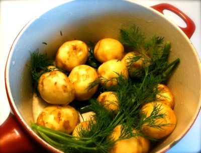 Idag var det premiär på nypotatis för mig. Första sändningen fanns visserligen tillgänglig redan till påsk men närmare 300 kronor kilot var lite väl magstarkt. De små späda knölarna var inte billiga nu heller, men väl värda sitt pris.