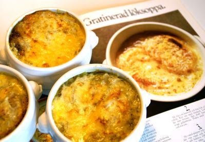 Hade Carls kokbok en gång i tiden. Löksoppan var favoriten. Nu är kokboken försvunnen sedan några år. Receptet har jag dock kvar i huvudet och konstaterar att inget glömts efter att ha läst här.