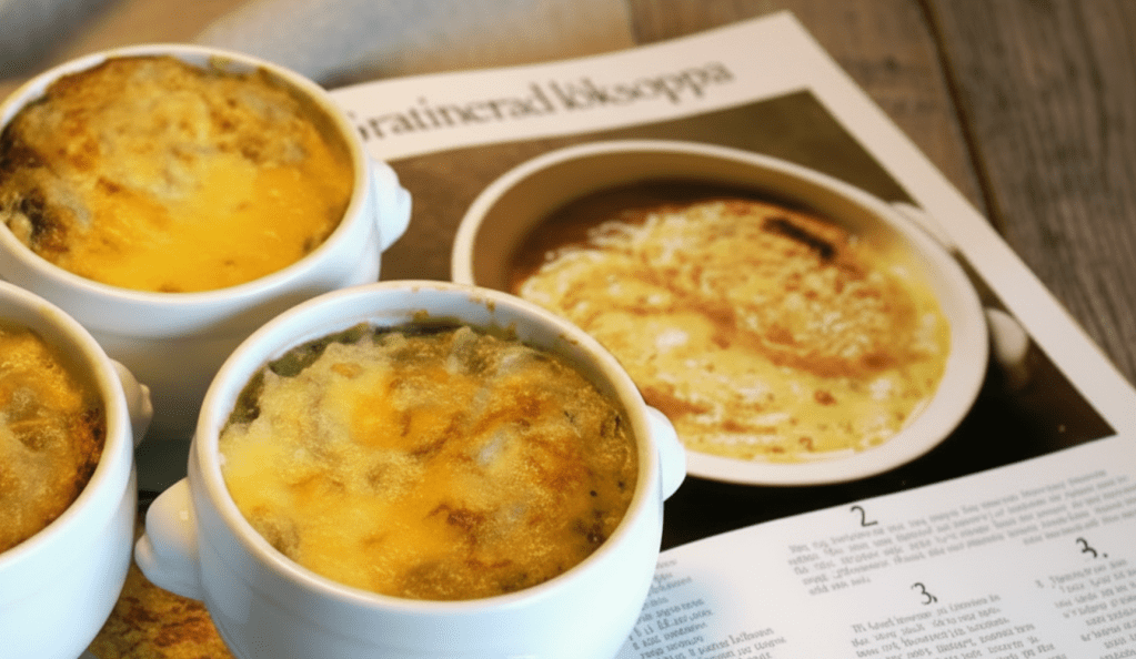En riktig bistroklassiker! Tänk att en kylig vinterdag i Paris slinka in på bistron med de rödvitrutiga dukarna och få en rykande het soupe a l’oignon serverad med ett gott bröd och ett litet glas vin. Funkar lika bra hemma en kall aprildag.