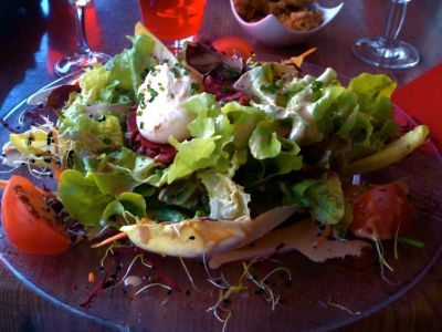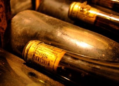 Nästa vin kom från en misstänkt dammig och möglig flaska och var ljust gyllene i färgen. Doften var enastående stor med markant ton av nymalt kaffe och kakao med inslag av honung, svamp, tryffel, toast och kanderade citrusfrukter. I smaken hittade jag en frisk men avrundad syra och en fin, nyanserad fruktighet av mogna gula frukter samt kaffe och svamp. Lång och nyanserad eftersmak. Efter en stund i glaset kom också aromer av vita blommor och mimosa. Det visade sig vara farfars vin, en Pouilly-Fuissé från 1966!!! Hel enastående hur väl detta vin stått sig.