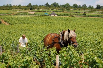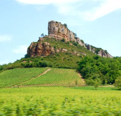 vingårdarna som i böljande vågor draperar sluttningarna med den dramatiska klippan Roche de Solutré i bakgrunden. Det här är nog den absolut vackraste delen av Bourgogne.