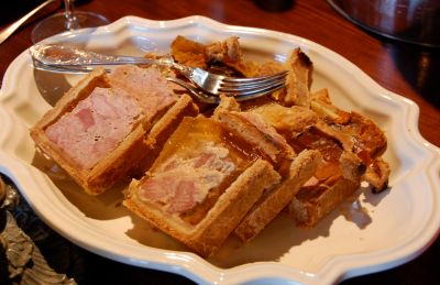 Gemensamt för vinerna var balans, elegans och stort uttryck i doften. Den fortsatta provningen skulle ske under lunchen. Det blev en avslappnad, improviserad, enkel kall lunch som dukades fram och serverades av vår värd och som tillagats av hans fru; ett jättelikt surdegsbröd, en fiskpaté, hemslagen pepprig och alldeles ljuvlig majonäs, inbakad grov fläskterrinne och en hemgjord ”salami” i form. Givetvis en ostbricka med lokala getostar och siste en kaka av en botten på briochedeg täckt med gräddkräm. Allt var sagolikt rustikt, vällagat och gott. En måltid att bli lycklig över. Frédéric berättade att dessa måltider kallas ”casse croute” – att bryta bröd. Jag älskar att bryta bröd!