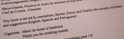 Nu kom vin efter vin, det ena mer komplexare och rikare än det andra. Till sist kom ett vin utan etikett och som hade en lite djupare färg och en stor doft av mogen tropisk frukt, honung, eucalyptus, mimosa och mineral. Smaken dominerades av en mycket hög men avrundad syra, fin mogen frukt, nötighet, balanserad och elegant. Det visade sig vara 1996 Pouilly-Fuissé ”Vers Cras” som vinifierats av hans far. Ett fantastiskt spänstigt och komplext vin.
