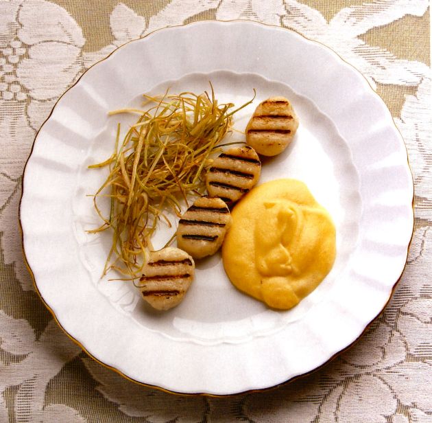 Jag har absolut ingenting emot konserverade fiskbullar, det kan vara jättetrevlig vardagsmat som både är billig och lättvarierad. Däremot ramlade jag nästan baklänges över vissa av recepten som försöker kamouflera den lilla bullen till gourmetmat. Värsta exemplet är ”Fattigmans pilgrimsmussla” som är panngrillade fiskbullar med rotfruktspuré och friterad purjolök. Jag kan inte undanhålla er receptingressen: