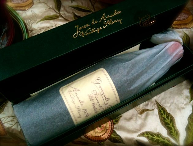 En anonym välgörare har skänkt en butelj 1979 Añada Palo Cortado. Det är något så udda som en årgångsbetecknad sherry av den ovanligare typen palo cortado. Så här beskrev jag vinet när jag provade det själv för ett år sedan: