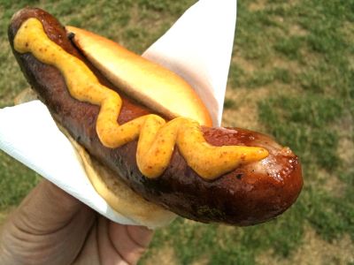 rymde allt från helstekt gris, hamburgare, grillkorv till isterband. Tillbehören var rakt på och rustika; pumpasallad, potatissallad eller bröd och den berömda Tollarpssenapen. Servicen var snabb och levererade maten utan krusiduller och meddelade med en axelryckning att potatissalladen var slut och alternativet till mitt beställda isterband var bröd. Väljer man den här typen av populära och välfrekventerade ställen är det smällar man få räkna med. Serveringen var helt fullsatt av gäster som insett att det gällde att passa på för att få uppleva den här formen av tillfällighetsgastronomi. Det blev take-away helt enkelt.