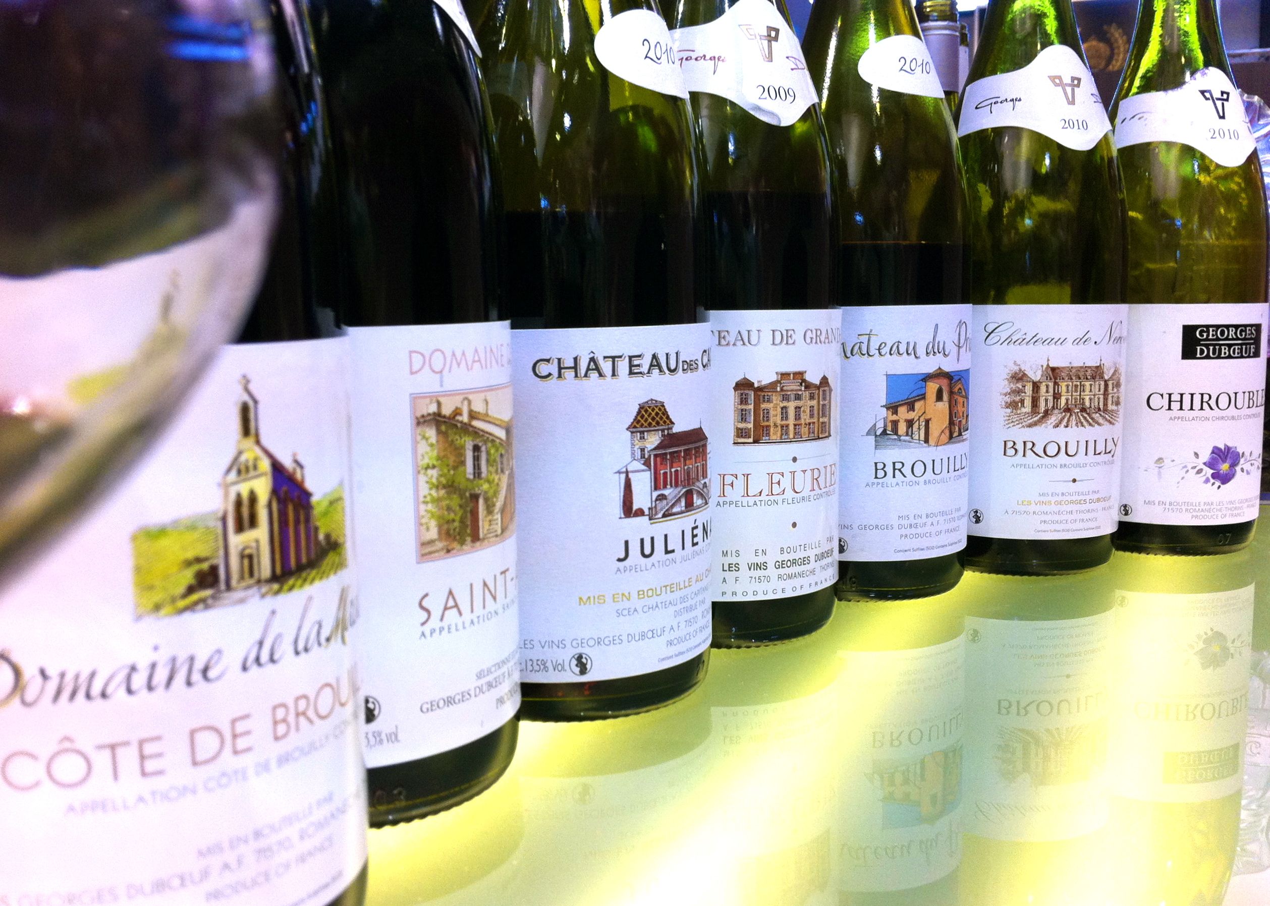 Av en slump gick vi in i en av de mer anspråkslösa butikerna som såg ut som ett litet varuupplag, saknade skylt och hade hafsigt skrivna prislappar i bjärta färger. Efter att ha tittat runt en stund börjar det gå upp för oss att de flesta, om inte alla, vinerna är signerade legendariske vinmakaren Jean-Luc Thunevin, mannen bakom garagevinet Château Valandraud. Det visade sig att vi hamnat i hans lilla nyöppnade lagerbutik! Som av en tillfällighet satt hans fru i lokalen och provade vin med ägarinnan till Château Angelus. Den totalspeedad men übertrevlige killen som skötte butiken lät oss prova lite godsaker och berättade att vineriet