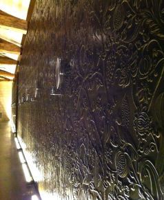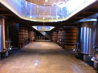 (men något tillkämpat) humör runt i den imponerande anläggningen. Detta är ett av de vackraste och mest genomtänkta vinerier jag sett med en otrolig känsla för detaljer (vi pratar mönstergjuten och linoljepolerade betongväggar med mönster av baskiska lädertapeter). Som tur var levde vinerna upp till de uppblåsta förväntningarna. Vi fick bland annat prova fick prova äldre årgångar, ner till 1995, från både Château Soutard och ägarna andra slott Château Cadet-Piola och Château Larmande. Mycket intressant.