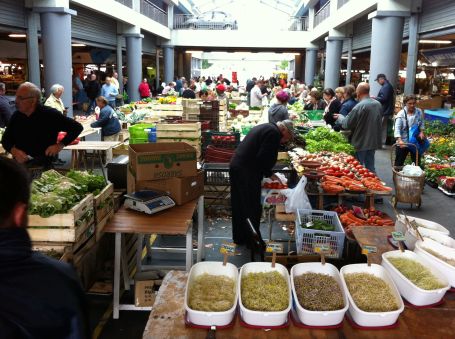 Jag begav mig själv i väg tidigt på morgonen till Marché des Capucins som är en härligt ruffig saluhall. Här finns ett överflöd av fisk, ostron, lokala specialiteter, caféer, enkla restauranger och ett minst sagt färgstarkt klientel. Det är alltid lika spännande att besöka lokala matmarknader men också frustrerande då det är svårt att hitta något att ta med hem, särskilt när man bor på ett hotell där man saknar tillgång till kylskåp. Dock ramlade jag över vinmakaren från Château Claron i Graves som ligger precis söder om staden. Hans viner var småtrevliga, billiga och vår konversation byggde på min stappliga vinfranska. Jag insåg snabbt att det inte var läge att spotta vinerna även om det var före nio på morgonen. Jag tog små klunkar och lämnade över de fortfarande fulla glasen som vigneronen mycket motvilligt och förvånat fick hälla ut. Tydligen är kutymen att smakprover svepes. Eftersom jag inte kan lämna en saluhall tomhänt så fick det bli en flaska rött av årgång 2007 för 7.40€.