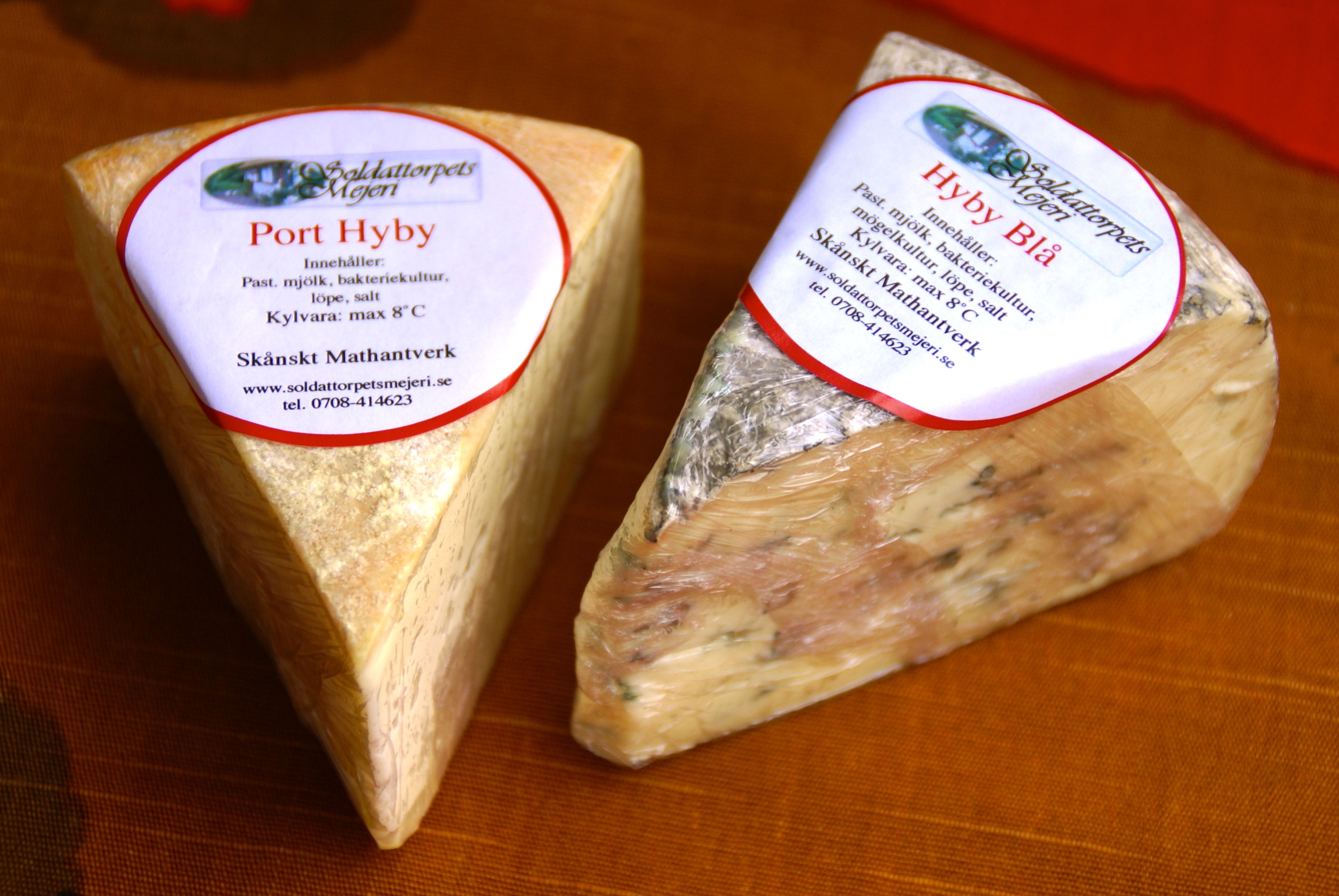 utanför lilla Hyby två mil från Malmö. Det är verkligen pyttelitet med själva mejeriet inrymt i typ en byggbarack modell större och butiken i en förväxt friggebod. Det ligger verkligen pittoreskt och naturskönt vid slutet av en slingrande smal grusväg. Jag provade mig igenom det aktuella sortimentet, tyvärr var ett par av ostarna tillfälligt slut. Bäst enligt mig var den smakrika och ganska krämiga rödkittsosten Port Hyby och den mer ampra och nästan smöriga Hyby Blå. Kryddosten hade en kraftfull kumminkaraktär och en trevlig syrlighet. Mycket bra om man gillar den typen. Färskosten med örter var helt ok men inget som stack ut. Det gjorde däremot den inlagda salladsosten av fetatyp som var kraftfull och frisk i smaken med fin konsistens. Att kilopriset hamnar runt 300 kronor får man räkna med för den här typen av hantverksproduktion.