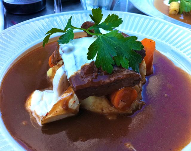 Vi kom ganska omgående till Åboulevarden där restauranger ligger som ett pärlband utmed kanalen och lockar till sig turister. Utan närmare reflektion slog vi oss ned på första bästa ställe med ett ledigt bord mot vattnet. Det blev italienska