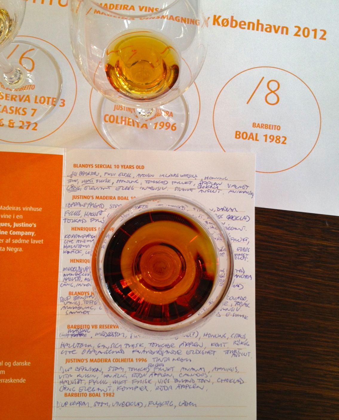 Komna till desserten och upplivade av rödvinsfynden botaniserade vi även bland de söta vinerna på listan. Det blev en 1992 Vin Santo från Lungarotti, ett vin som inte verkar produceras längre, samt 1975 Fondillon Gran Reserva från Salvador de Poveda. Vin santon verkade nästan vara konserverad och levererade de förväntade mandel-, nöt- och knäcktonerna samt bra friskhet och balanserad sötma som perfekt gick ihop med mandelkakan i desserten. Det andra vinet valde vi för att det är en typ man sällan stöter på. Fondillon är ett vin från spanska Alicante som idag endast görs av tre producenter. Det framställs av sent skördade monastrelldruvor som får jäsa naturligt upp till 18% och därefter lagras i decennier i stora träfat där de med tiden koncentreras. Tyvärr hade dettta vin inte klarat sig så bra utan tappat fyllighet och frukt. Ändå intressant att prova.