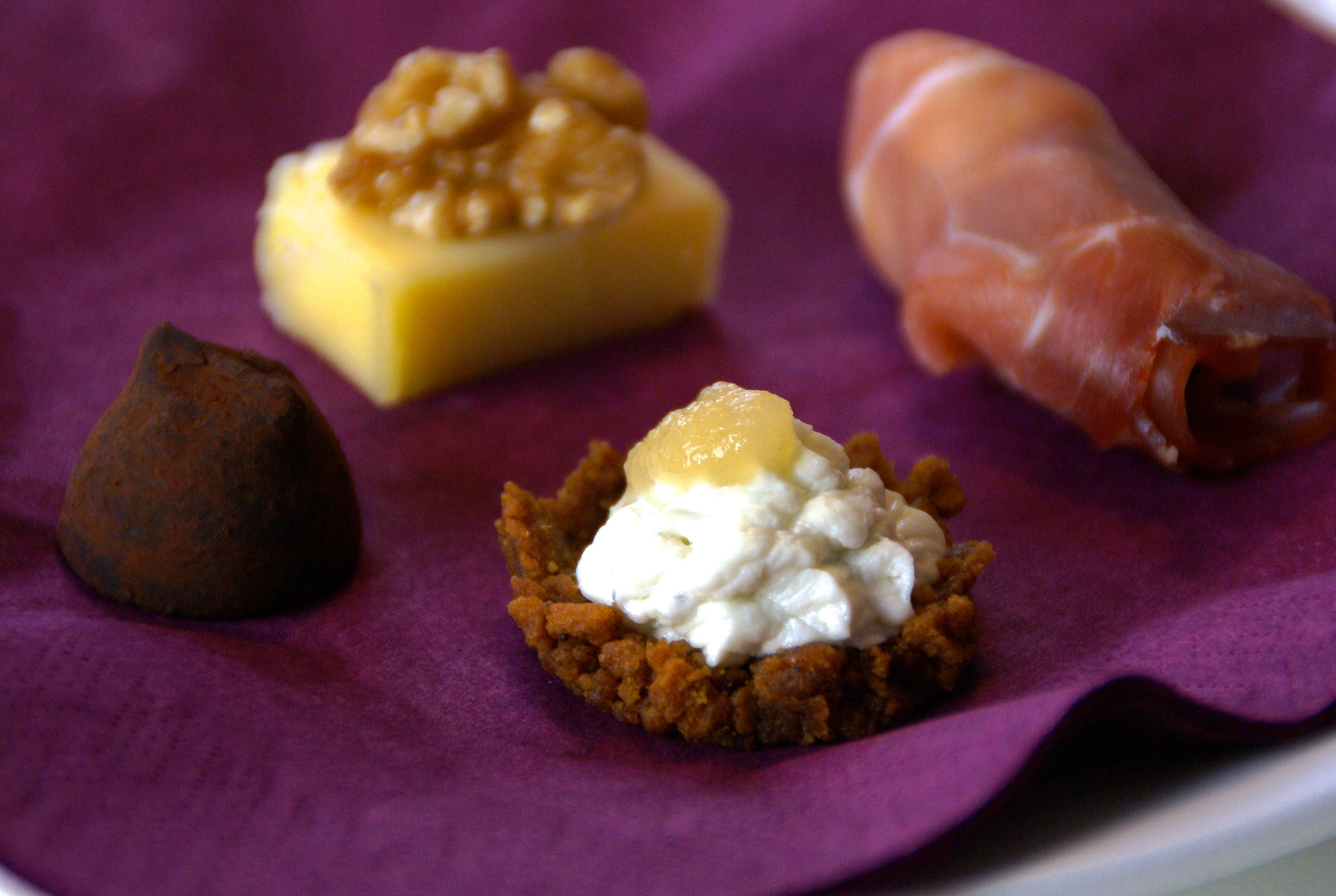 Igår hade jag en provning på temat ”Julens smaker”. Det är ett upplägg jag har för att slippa hålla glöggprovningar så här års. Jag brukar välja ut ett antal olika drycker med lös koppling till julen och servera små tilltugg, eller jultapas, och sen kåserar jag kring helgens drycker och mat. Brukar bli ganska kul.