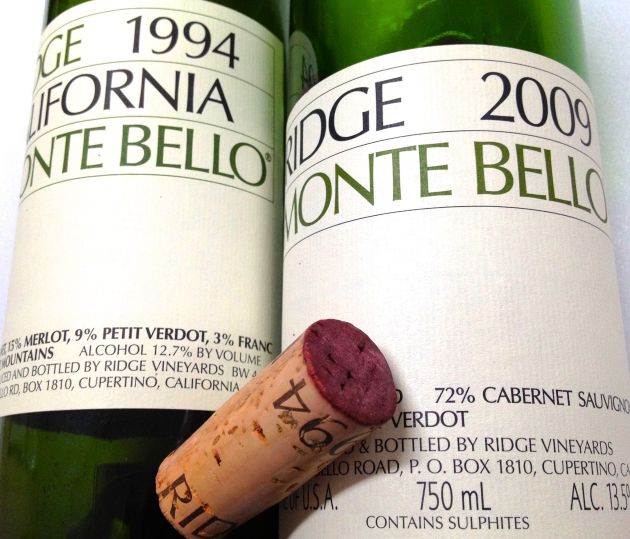 Två årgångar med 15 års skillnad av legendariska vinet Montebello från Ridge.