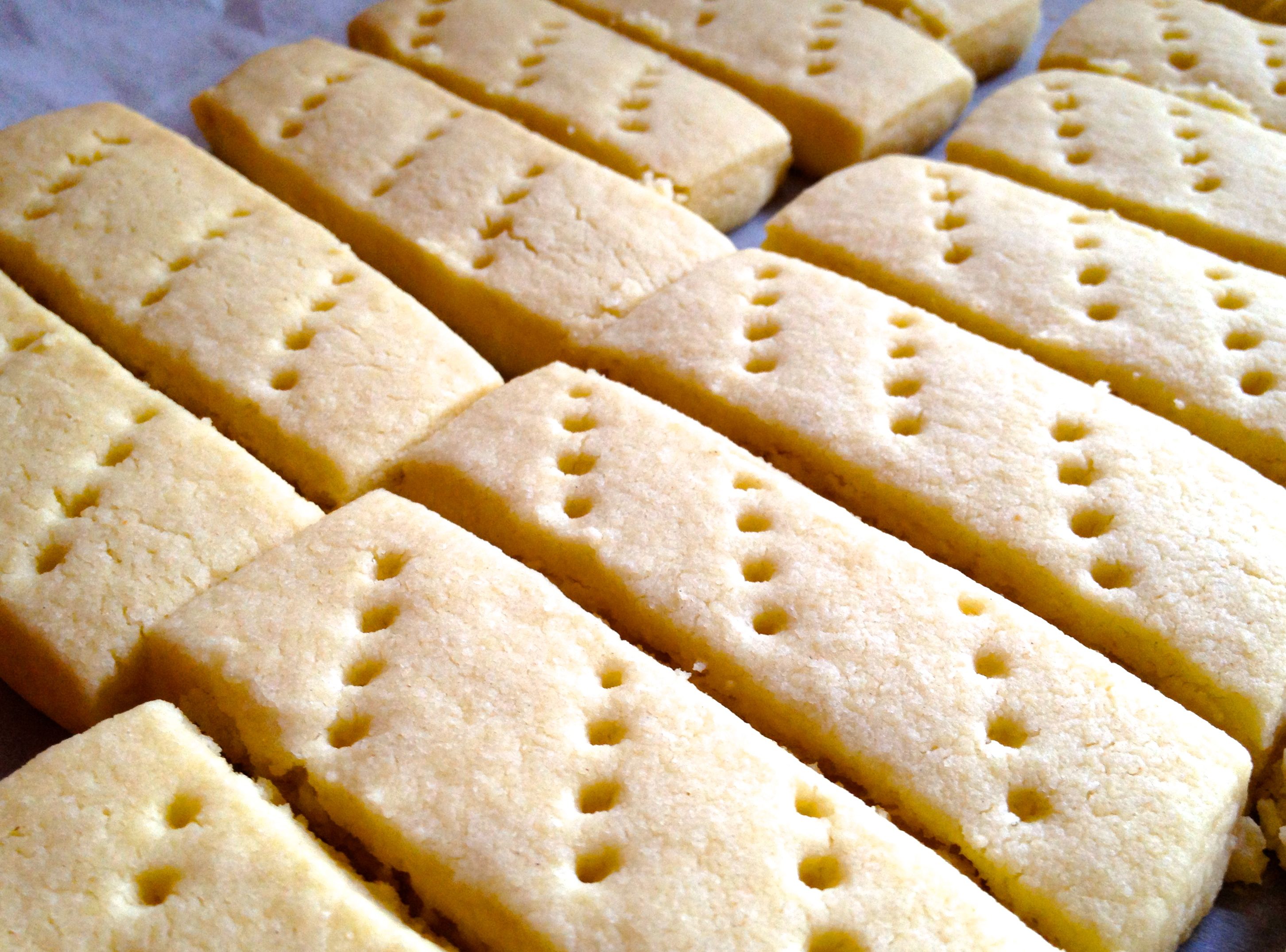 Rör 230 g rumsvarmt smör mjukt. Rör in 110 g strösocker och 0,5 tsk salt ordentligt. Sikta över 260 g vetemjöl och 80 g maizena och arbeta in tills degen går ihop. Kavla ut till en rektangel cirka 1 cm tjock på bakplåtspapper. Skär ut kakor och sprid ut dem med några millimeters mellanrum och nagga dem med en gaffel. Kyl 20-30 minuter i kylskåp. Grädda cirka 45 minuter på 150°. Kakorna ska inte ta färg. Låt svalna innan du börjar hantera dem.