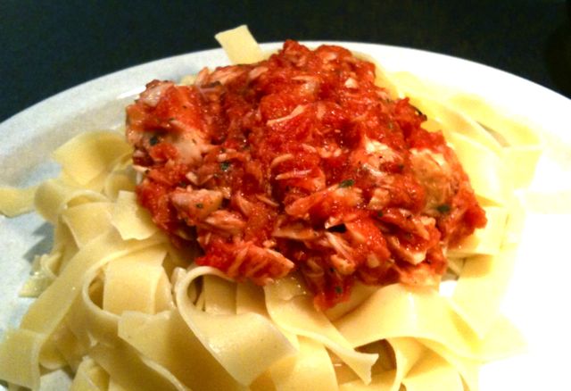 Lös upp 2,5 msk muscovadosocker, 1 msk strösocker och 0,5 msk salt med 1,5 msk calvados och 0,5 msk 12%-ättika. Blanda i en msk vardera av dijonsenap, svensk senap och skånsk senap. Vispa under omrörning ner o,75 dl rapsolja i en tunn stråle. Blanda till sist i två msk crème fraîche och en msk frusen, finhackad dill. Den frusna dillen tycker jag är helt överlägsen och mest ekonomisk så här års. Vänd slutligen ned inläggningssill (210 g från 420 g burk) som runnit av och skurits i fina gaffelbitar. Låt vila åtminstone ett dygn. Edit: Kolla min uppdaterade version av detta recept.