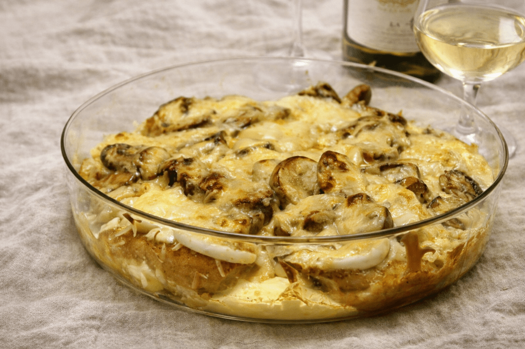 Sätt ugnen på 225°. Stycka fågeln om du köpt en hel. Salta och peppra bitarna lättochvänd dem sedan i vetemjöl.Stek i en gryta med smör på medelhög värme tills bitarna blir gyllenbruna runt om. Slå vinet/buljongen i grytan, på med locket och in i ugnen (eller låt stå på spisen på svag värme) i 40 minuter. Under tiden skivar du och fräser champinjonerna lätt i smör i fem minuter. Arbeta ihop 1,5 msk vardera av smör och vetemjöl. Ta upp kycklingbitarna ur grytan och håll varma. Lägg ner svampen i grytan och slå på grädde. Låt koka upp och rör sedan ner smör/mjölblandningen lite i taget och låt sedan sjuda i 5 minuter. Slå på citronsafteoch cayennepeppar och smaka eventuellt av med mer salt. Servera med ris.