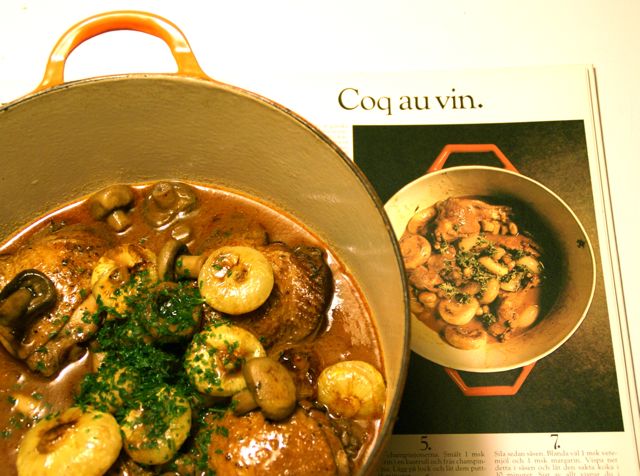 Lättlagad rätt med bra smak. Tar lite drygt en timme men sköter sig mesta tiden själv. Inte lika rik och komplex som Julia Childs recept som faktiskt är nästan identiskt om man ser till innehållet. Å andra sidan är denna så lättlagad att den kan bli en mitt-i-veckan-favorit.