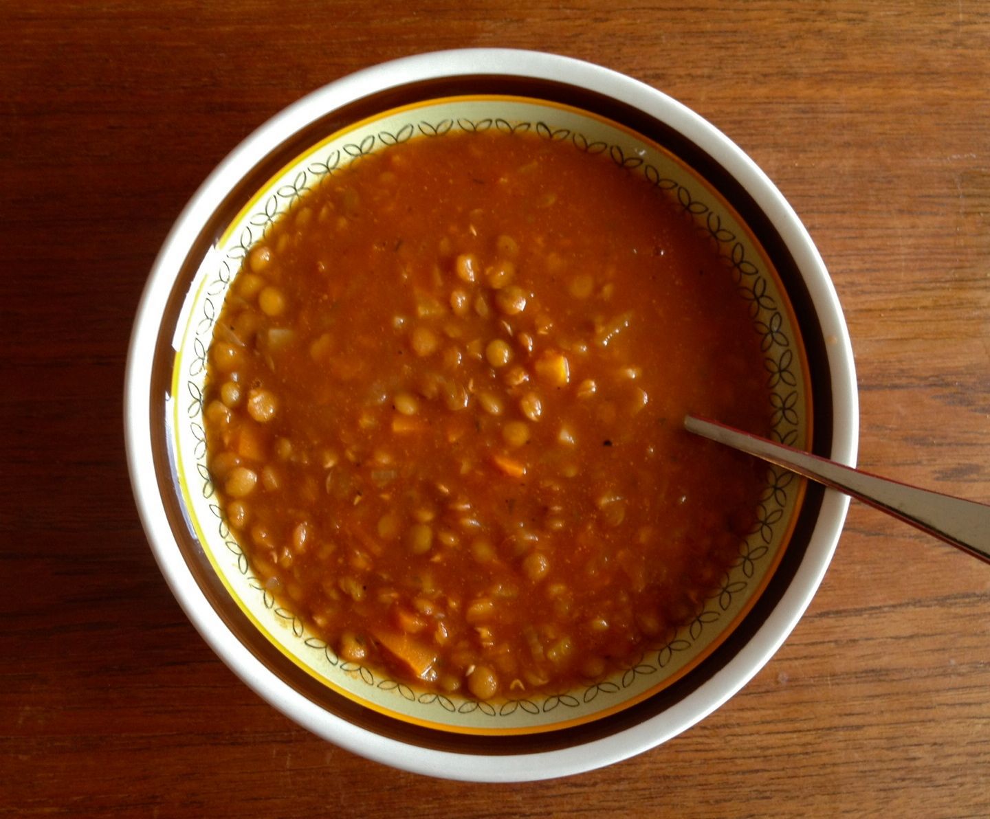 Det här receptet flimrade förbi på facebook via KIT igår och fångade mitt intresse. Älskar linssoppa och det här verkade både enkelt och gott. Det var egentligen avsett för slökokare (två timmar på hög) men det verkade onödigt med tanke på hur snabblagad soppa är. Jag småjusterade receptet och anpassade mängderna något.