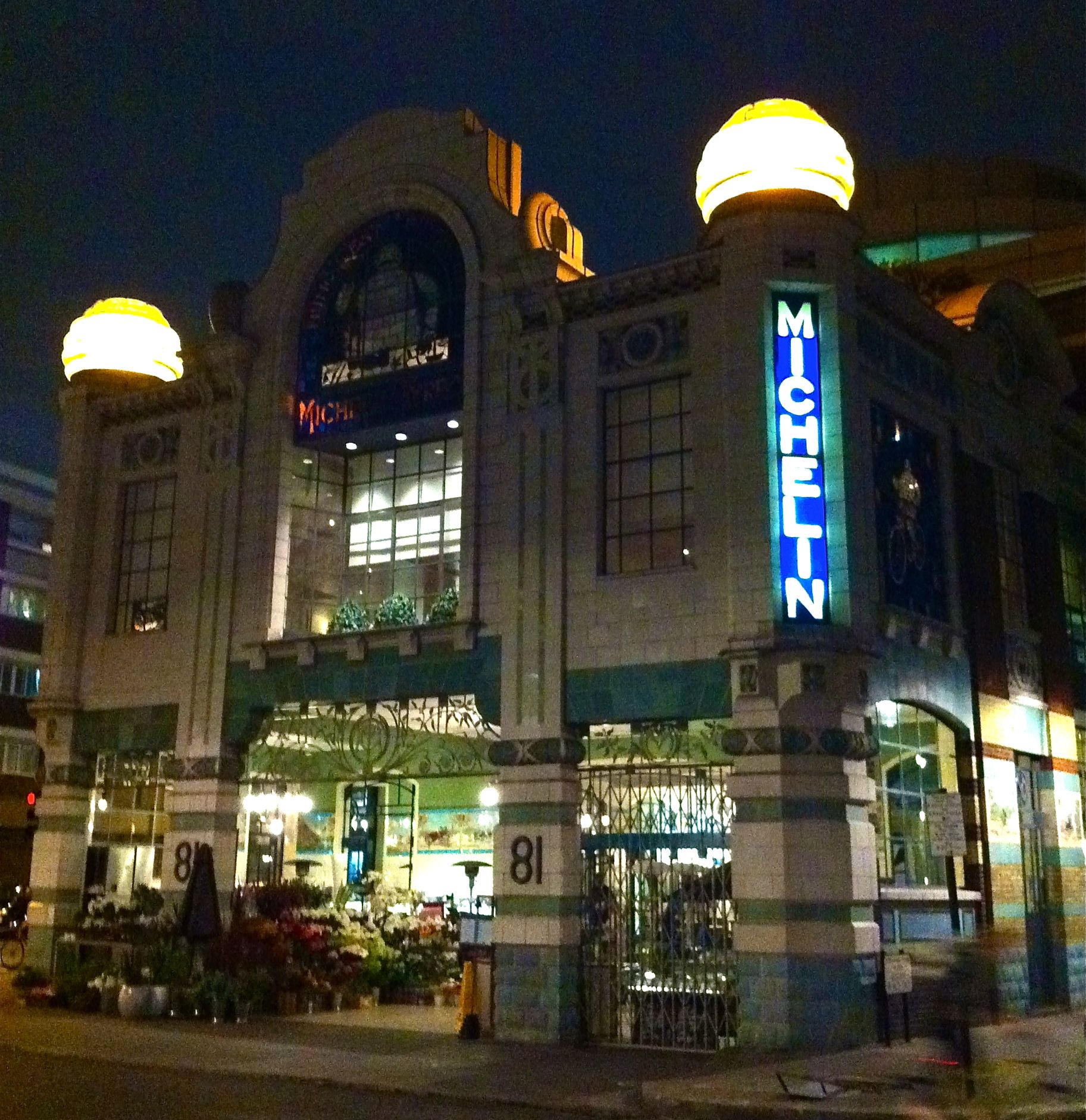 Här kan vi verkligen snacka om en michelinkrog. Restaurangen är inrymd i en 100 år gammal michelinverkstad med fantastiska originalutsmyckningar i form av blyinfattade reklamfönster med mera. I bottenplanet finns en blomsterbutik, ostronbar samt en Terence Conran-butik. På andra våningen i de pampiga gamla direktionslokalerna låg själva restaurangen. Klassiskt fransk såklart. Vad annars i dessa lokaler. Det franska märktes inte bara i menyn som var omfattande och svårläst och den sobra miljön där däcktemat gick igen men kanske ännu mer i den strikta hackordning som rådde bland serveringspersonalen. Var och en med sin uppgift klart inpinkad. Fantastiskt att uppleva när det flyter som det ska. Det gjorde det inte riktigt på Bibendum.