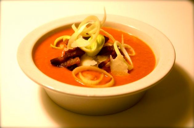 - Soppa med amontillado. Sherrykaraktären dominerade över tomaten med en ton av nytt läder och ett litet drag av kemilåda. Inte särskilt trevligt.